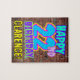 This fun birthday puzzle design features the message “HAPPY 22ND BIRTHDAY,” having a colorful, vibrant, urban street art and graffiti inspired appearance, along with a personalized recipient name. The background features a brick wall inspired pattern. A fun, editable birthday puzzle like this might be given in celebration of somebody’s twenty-second birthday. [~Z0000532]