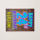This fun birthday puzzle design features the message “HAPPY 24TH BIRTHDAY,” having a colorful, vibrant, urban street art and graffiti inspired appearance, in addition to a custom recipient name. The background features a pattern inspired by the look of a brick wall. A fun, editable birthday puzzle like this might be a fun way to send birthday greetings to somebody who is celebrating their twenty-fourth birthday. [~Z0000532]