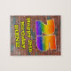 Este vibrante y emocionante arte urbano callejero y el diseño del rompecabezas inspirado en el graffiti de cumpleaños presenta un gran número "25" con un colorido patrón inspirado en el gradiente del espectro del arco iris, junto con el mensaje "Feliz cumpleaños 25", y un nombre de personalizable. El fondo está decorado con un patrón de pared de ladrillo. Un colorido rompecabezas de cumpleaños editable como este podría ser usado para reconocer el 25º cumpleaños de alguien. [~Z0000545]