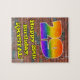 Este fascinante y vibrante arte urbano callejero y diseño de rompecabezas de cumpleaños con tema de graffiti presenta un gran número "29" con un colorido patrón inspirado en el gradiente del espectro arcoiris, junto con el mensaje "Feliz cumpleaños 29", y un nombre personalizado. El fondo tiene un patrón de pared de ladrillo. Un rompecabezas vibrante y personalizado de cumpleaños como este podría ser usado para reconocer el 29º cumpleaños de alguien. [~Z0000545]