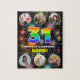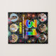 Este divertido y animado diseño de rompecabezas con temática de cumpleaños presenta un gran número "31" con un vibrante patrón de gradiente inspirado en el espectro del arcoiris, junto con el mensaje "FELIZ CUMPLEAÑOS 31", y un nombre personalizado, en un patrón inspirado en estallidos de fuegos artificiales de celebración multicolores. Cerca de arriba y abajo hay imágenes que se pueden personalizar, tal vez con fotos del destinatario, y/o la familia y amigos del destinatario. Un puzzle de rompecabezas alegre y personalizado de cumpleaños como este podría ser usado para celebrar el cumpleaños treinta y uno de alguien. (Fotografía © Storytree Studios, Stanford, CA.) [~Z0000664]