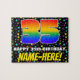Este llamativo y audaz diseño de rompecabezas con temática de cumpleaños presenta un gran número de "35" con un patrón de gradiente inspirado en el espectro de colores arcoiris, junto con el mensaje "FELIZ 35º BIRTHDAY", y un nombre editable para destinatario. El fondo tiene un alegre patrón de estrellas multicolores. Un acertado rompecabezas de cumpleaños personalizado como este puede ser una manera divertida de enviar saludos de cumpleaños a alguien que está celebrando su cumpleaños treinta y cinco. [~Z0000607]