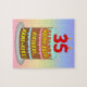 este animado y alegre diseño de rompecabezas de cumpleaños incluye una representación al estilo personalizado de una torta de cumpleaños de tres niveles con velas en forma de numeral en la parte superior que muestran el número "35", junto con el mensaje "FELIZ cumpleaños 35", y un nombre del destinatario del personalizable. El fondo presenta un diseño de gradiente inspirado en el espectro de colores pastel. Un divertido rompecabezas de cumpleaños editable como este podría ser usado para celebrar el cumpleaños treinta y cinco de alguien. [~Z0000621]