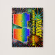 Este divertido y alegre diseño de rompecabezas con temática de cumpleaños presenta un gran número "44" con un patrón de gradiente inspirado en el espectro de colores arcoiris, junto con el mensaje "FELIZ CUMPLEAÑOS 44", y un nombre de destinatario editable. El fondo está decorado con un alegre patrón multicolor que se parece a los fuegos artificiales de celebración. Un colorido rompecabezas de cumpleaños editable como este podría ser usado para reconocer el 44 cumpleaños de alguien. [~Z0000605]