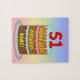 Este divertido y alegre diseño de rompecabezas con temática de cumpleaños incluye una representación al estilo personalizado de una torta de cumpleaños de tres niveles con velas en forma de número en la parte superior que muestran la edad "51", junto con el mensaje "FELIZ 51º CUMPLEAÑOS", y un nombre de destinatario personalizado. El fondo presenta un diseño de gradiente inspirado en el espectro de colores pastel. Un puzzle animado y de personalizable como este puede ser dado en celebración del cincuenta y primer cumpleaños de alguien. [~Z0000621]