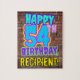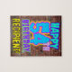 This fun birthday puzzle design features the message “HAPPY 54TH BIRTHDAY,” having a colorful, vibrant, graffiti-inspired look, along with a custom recipient name. The background features a pattern inspired by the look of a brick wall. A fun, personalized birthday puzzle like this might be given in celebration of somebody’s fifty-fourth birthday. [~Z0000532]