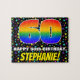 Este alegre y optimista diseño de rompecabezas de cumpleaños presenta un gran número "60" con un patrón de gradiente inspirado en el espectro de colores arcoiris. También incluye el mensaje "FELIZ CUMPLEAÑOS 60", y un nombre de destinatario editable. El fondo tiene un alegre y colorido patrón de estrellas. Un rompecabezas divertido y editable de cumpleaños como este podría ser una manera divertida de enviar un mensaje de bienvenida de cumpleaños a alguien que está celebrando su sexagésimo cumpleaños. [~Z0000607]