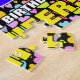 Este divertido y colorido diseño de rompecabezas con temática de cumpleaños presenta un gran número "60" con un patrón de gradiente inspirado en el espectro de colores arcoiris. También incluye el mensaje "FELIZ CUMPLEAÑOS 60", y un nombre del destinatario del personalizable. El fondo tiene un alegre patrón de corazones amorosos de varios colores y tamaños. Un acertado rompecabezas de cumpleaños personalizado como este podría ser usado para celebrar el sexagésimo cumpleaños de alguien. [~Z0000611]