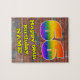 Este divertido y vibrante arte urbano callejero y el diseño del rompecabezas inspirado en el graffiti de cumpleaños presenta un gran número "66" con un colorido patrón inspirado en el gradiente del espectro del arcoiris. También incluye el mensaje "Feliz cumpleaños número 66", y un nombre editable. El fondo está decorado con un patrón de pared de ladrillo. Un puzzle de cumpleaños vibrante y personalizado como este podría ser una manera divertida de enviar un mensaje de bienvenida de cumpleaños a alguien que está celebrando su sexagésimo sexto cumpleaños. [~Z0000545]