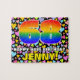 Este llamativo y emocionante diseño de rompecabezas con temática de cumpleaños presenta un gran número de "68" con un patrón de gradiente inspirado en el espectro multicolor, junto con el mensaje "FELIZ CUMPLEAÑOS 68", y un nombre de destinatario editable. El fondo tiene un alegre, colorido y amoroso patrón de corazones. Un colorido rompecabezas de cumpleaños personalizado como este podría ser una manera divertida de dar saludos de cumpleaños a alguien que está celebrando su sexagésimo octavo cumpleaños. [~Z0000611]