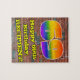 Este vibrante y divertido arte urbano callejero y el diseño del rompecabezas de cumpleaños con temática de graffiti presenta un gran número "69" con un colorido patrón inspirado en el gradiente del espectro arcoiris, junto con el mensaje "Feliz cumpleaños número 69", y un nombre personalizado. El fondo está decorado con un patrón de pared de ladrillo. Un colorido rompecabezas de cumpleaños personalizado como este podría ser dado en celebración del 69º cumpleaños de alguien. [~Z0000545]