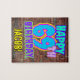 Este divertido diseño de rompecabezas de cumpleaños incluye el mensaje "FELIZ CUMPLEAÑOS 69", que tiene un vibrante, colorido, arte urbano callejero y una apariencia inspirada en el graffiti, además de un nombre de destinatario personalizado. El fondo está decorado con un patrón inspirado en el aspecto de una pared de ladrillo. Un divertido rompecabezas de cumpleaños de personalizable como este podría ser dado para celebrar el cumpleaños sesenta y nueve de alguien. [~Z0000532]