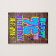 Este divertido diseño de rompecabezas con temática de cumpleaños presenta el mensaje "FELIZ CUMPLEAÑOS 76", con una apariencia vibrante, colorida, inspirada en el graffiti y el arte urbano callejero, además de un nombre editable para el destinatario. El fondo está inspirado en una pared de ladrillo. Un divertido rompecabezas de cumpleaños personalizado como este podría ser usado para reconocer el cumpleaños setenta y seis de alguien. [~Z0000532]