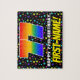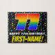 Este vibrante y alegre diseño de rompecabezas de cumpleaños presenta un gran número "77" con un patrón de gradiente inspirado en el espectro multicolor del arcoiris. También incluye el mensaje "HAPPY 77th BIRTHDAY", y un nombre de destinatario editable. El fondo tiene un patrón de estrellas animado y colorido. Un acertado rompecabezas personalizado de cumpleaños como este podría ser usado para reconocer el cumpleaños setenta y siete de alguien. [~Z0000607]