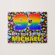 Este audaz y colorido diseño de rompecabezas con temática de cumpleaños presenta un gran número de "92" con un patrón de gradiente inspirado en el espectro de arcoiris multicolor, junto con el mensaje "HAPPY 92nd BIRTHDAY", y un nombre de destinatario personalizado. El fondo tiene un patrón optimista de corazones amorosos de varios tamaños y colores. Un apasionante rompecabezas de cumpleaños de personalizable como este podría darse en celebración de los noventa y dos años de vida de alguien. [~Z0000611]