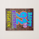 Este divertido diseño de rompecabezas con temática de cumpleaños presenta el mensaje "FELIZ 92º CUMPLEAÑOS", con una apariencia vibrante, colorida, inspirada en el graffiti, además del nombre del destinatario del personalizable. El fondo está decorado con un patrón inspirado en el aspecto de una pared de ladrillo. Un divertido rompecabezas de cumpleaños personalizado como este podría ser usado para reconocer el cumpleaños noventa y dos de alguien. [~Z0000532]