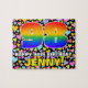 Este vibrante y llamativo diseño de rompecabezas de cumpleaños presenta un gran número de "98" con un patrón de gradiente inspirado en el espectro multicolor de arcoiris, junto con el mensaje "FELIZ 98º BIRTHDAY", y un nombre de destinatario personalizado. El fondo presenta un patrón optimista de cariñosas formas cardíacas de varios colores y tamaños. Un enigma de cumpleaños audaz y personalizado como este podría ser una manera divertida de ofrecer deseos de cumpleaños a alguien que está celebrando su cumpleaños noventa y ocho. [~Z0000611]