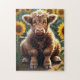 Puzzle A little cow in a sunflower field