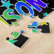 Este diseño de rompecabezas vibrante, divertido, con temática de cumpleaños, presenta el mensaje "FELIZ CUMPLEAÑOS, ADDISON" con los personajes con un coloreado patrón de gradiente inspirado en el espectro de arcoiris, además de un patrón de fondo de estrellas animadas. Un acertado rompecabezas como este podría ser una manera divertida de reconocer el cumpleaños de alguien llamado Addison. [~Z0000468]