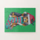 Este adorable cachorro de Navidades mixtos negros y marrones se ve muy festivo usando su sombrero rojo de santa con un sorbo de holly en él. Está sosteniendo a sus Navidades de rayas rojas y verdes llenándose la boca mientras espera ansiosamente una visita de Santa Claus para llenar sus existencias de muchos regalos y otros enseres. Se ve muy especial en este original rompecabezas estacional. El adorable diseño de cachorros destaca en el fondo verde festivo. Creo que esta foto de cachorro única de los navidades hace un gran regalo para los Navidades pequeños.