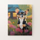 Puzzle Adorable chihuahua negra con flores silvestres