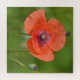 Este rompecabezas de bonito presenta una adormidera roja magnífica con un fondo verde suave.