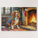 Puzzle Afghan Hound Fireplace with Christmas Lights