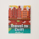 Afiche de viaje de Delft Holland. Poster de vacaciones de los Países Bajos impreso. Afiche de viaje del Canal Holland Delft.