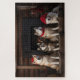 Una escena encantadora captura la esencia de la comodidad y el espíritu navideño mientras compañeros peludos adornados con sombreros de Santa Claus se reúnen alrededor de una crepitante chimenea. El calor que emana del hogar crea una atmósfera acogedora para estos adorables caninos, mientras que medias festivas cuelgan en el fondo, realzando el ambiente alegre. La encantadora ilustración retrata una imagen atemporal de compañerismo y alegría festiva, perfecta para celebrar la temporada navideña con un toque de encanto canino.