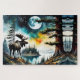 Gran alaska Moose caminando sobre la montaña Ridge bajo una luna llena dominando el océano AI Arte generado por minx267