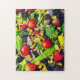 Pon a prueba tus habilidades de creación de puzzles con esta toma de una colorida y caótica ensalada y almuerzo de fruta. Rompecabezas de rompecabezas de 11 x 14 pulgadas con 252 piezas.