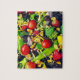 Pon a prueba tus habilidades de creación de puzzles con esta toma de una colorida y caótica ensalada y almuerzo de fruta. Rompecabezas de rompecabezas de 8 x 10 pulgadas con 110 piezas.
