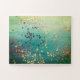 Un sombreado sombrío de verde azul verde azulado es el telón de fondo de estrellas purpurinas de oro lloviendo y algunas oscuras para contrastar con el brillante polvo de estrellas. Un rompecabezas divertido de fantasía cósmica para todos