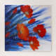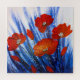 Una pintura acrílica de amapolas rojas, en un campo de hierba azul abstracta.