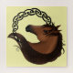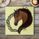 Un perfil de retrato de caballo marrón con nudo celta tribal funciona en círculo en un fondo amarillo