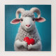 Divertido Ewe sosteniendo un corazón rojo.