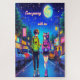 Una pareja de juegos animales caminando por la calle por la noche con luna llena en el cielo. Ven A Jugar Conmigo.