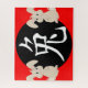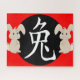Carácter chino para el signo zodiaco conejo y ilustracion conejo en blanco sobre rojo y negro.
