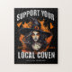 Diseño oscuro y místico con una bruja poderosa en un ambiente muy ardiente con el lema "Apoya tu hornillo local". Perfecto para Halloween, amantes de la brujería, fanáticos de la moda gótica y cualquiera que acepte una vibración espeluznante y mágica.