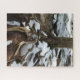 Interesante árbol con raíces expuestas y nieve tomada en las Cataratas del Cañón en la península superior de Michigan.