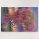Puzzle Árbol guiado rosado al atardecer junto al estanque