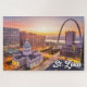Este rompecabezas de la puesta de sol presenta una fotografía de la ciudad de St. Louis, Missouri. Este rompecabezas sería una idea de regalo verdaderamente maravillosa para amigos y familia.