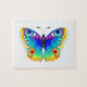Arcoiris, realista, de dibujo artístico, colores brillantes mariposa pavo real con alas detalladas texturizadas sobre fondo blanco. Mariposa arcoiris.