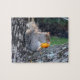 Este rompecabezas lindo ofrece una ardilla gris en un árbol que come una mini calabaza. La corteza del árbol y el fondo del hacia fuera-de-foco hacen este rompecabezas un pedazo de un desafío.