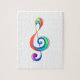 Tecla musical extraída de capas multicolores de colores arcoiris sobre fondo blanco.