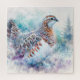Este rompecabezas presenta una hermosa pintura acuarela de un ptarmigan de sauce (también conocido como grupo de sauce), que captura la intrincada belleza de este ave de bosque con una mezcla artística de realismo y expresión fluida. El plumaje meticulosamente detallado del grupo muestra una mezcla armoniosa de marrones, blancos suaves y azules fríos. El entorno es de ensueño, con un bosque invernal, con un suave lavado de azul, verde azulado y morado, que realza la serenidad y la calidad etérea de la composición. Perfecto para los amantes de las aves, los entusiastas de la naturaleza y los coleccionistas de acuarela de aves, esta obra de arte que presenta el ave estatal de Alaska combina perfectamente la naturaleza y la tranquilidad.