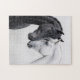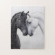Rompecabezas con dos hermosos caballos tocando narices, uno es blanco y el otro es negro. Un regalo perfecto para los amantes del caballo.