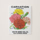 Arte de etiqueta de producto de paquete de semillas con ilustración antigua que presenta plantas y flores de clavel doble mixto. Cultiva hermosas flores de dianthus rosadas, rojas y amarillas en tu jardín de primavera o en una granja. Publicidad antigua para Huth Seed Company, Inc., San Antonio, Texas.