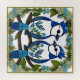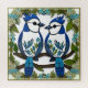 Arte de papel colorido que representa dos agujeros azules encaramados en una rama, recubiertos de un marco decorativo. El diseño muestra una artesanía intrincada, tonos vibrantes y detalles armoniosos que evocan la belleza y la creatividad de la naturaleza.