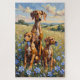 Una escena familiar de Silken Windhound llena de gracia ambientada en una pradera ventosa de acianos. Con un perro adulto elegante y dos cachorros adorables, esta obra de arte captura movimiento, suavidad y belleza natural, perfecta para amantes de los perros y decoración serena.